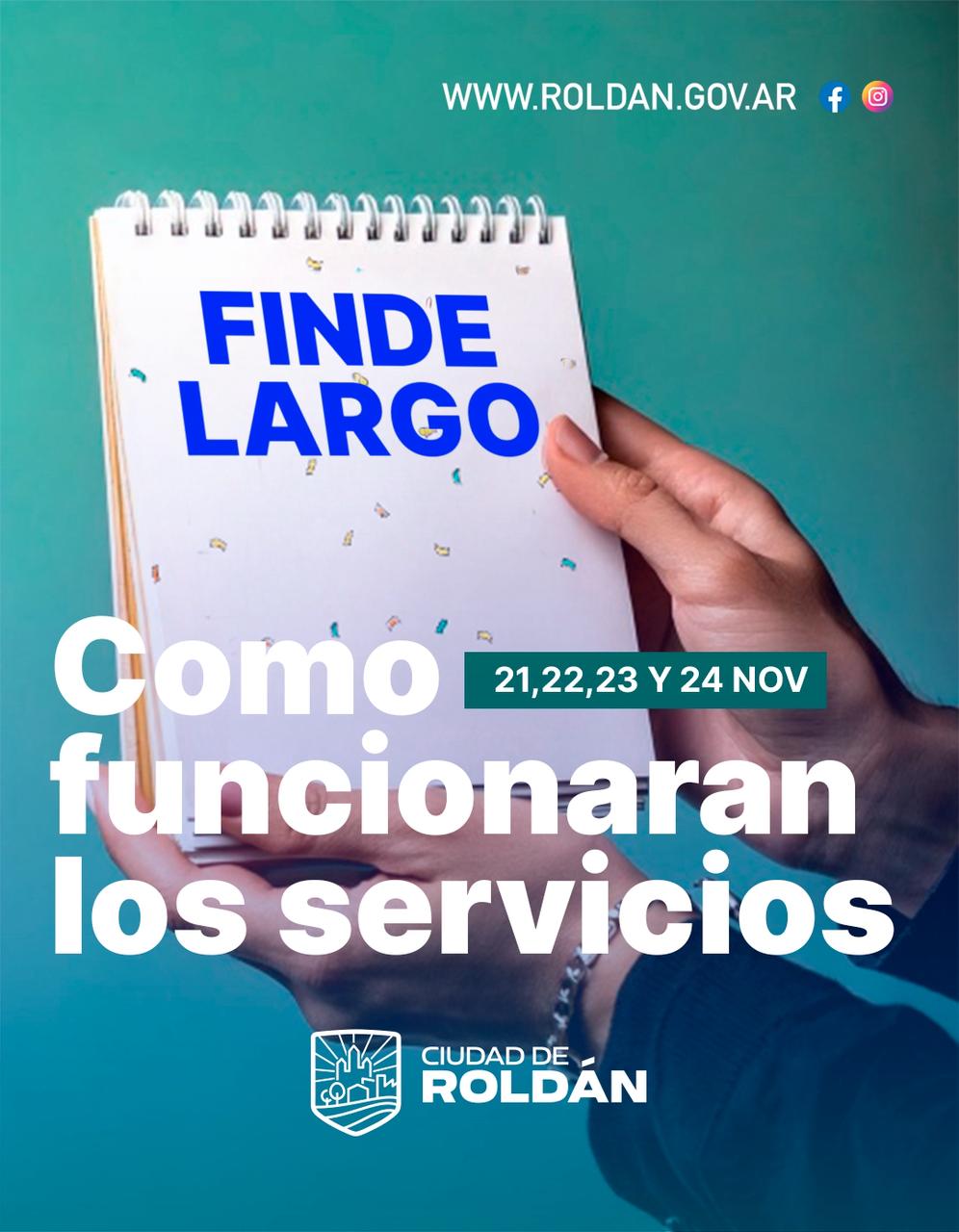 La Municipalidad de Roldán informa a la comunidad cómo funcionarán los servicios municipales durante el fin de semana largo, especialmente los días feriados del viernes 21 y lunes 24 de noviembre.