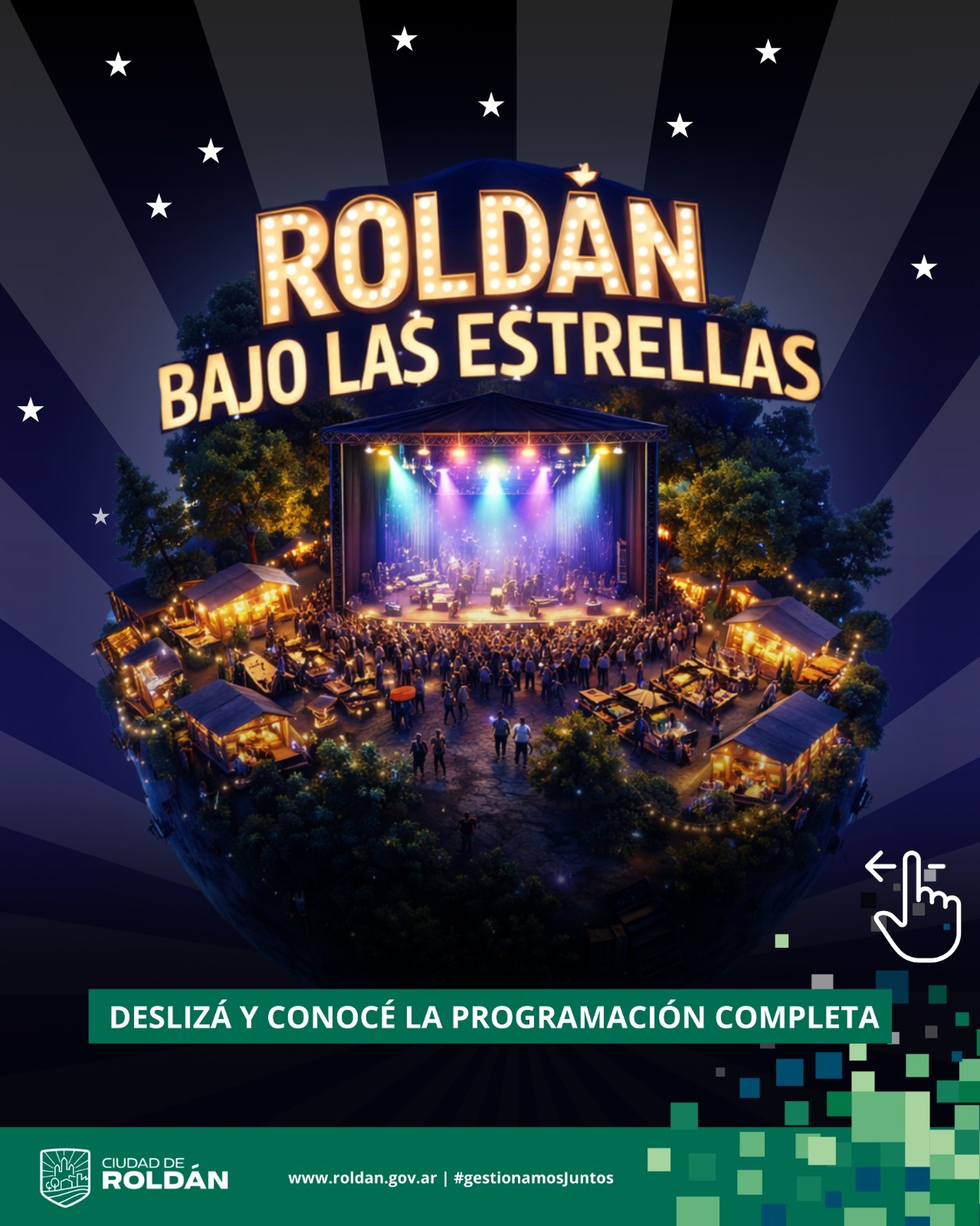 La Municipalidad de Roldán invita a disfrutar de “Roldán Bajo las Estrellas”, un ciclo cultural de verano que propone shows en vivo, feria de artesanos y emprendedores, propuestas gastronómicas y encuentros al aire libre para disfrutar en familia y con amigos.